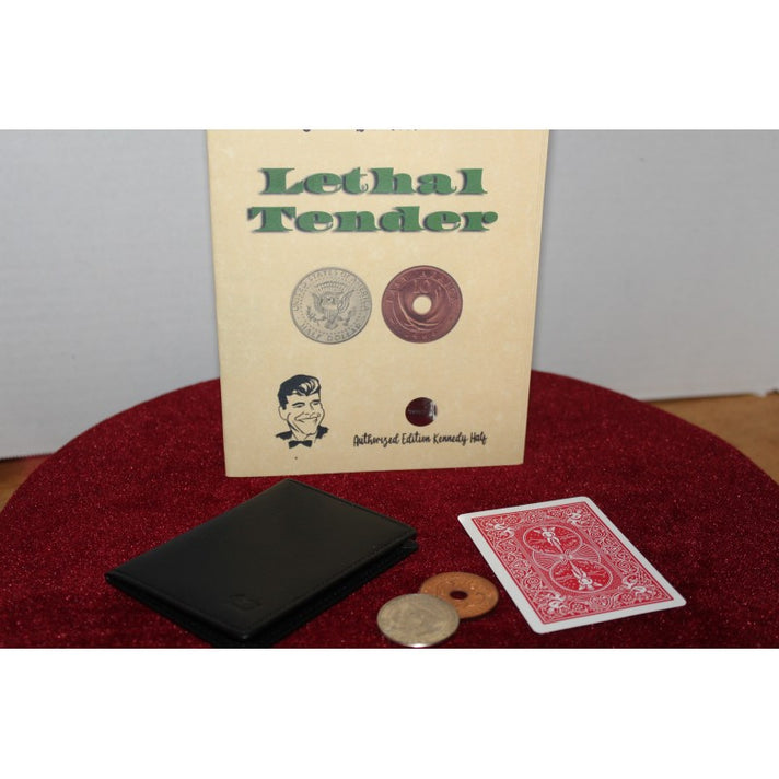 This is a pretty nicely made trick, and it works well. A plus is that you get a TCC card wallet to put it in. The card is very well made. Since the original instructions mentioned that the coin the half dollar changed into was an African dime, I ordered one to see if it would fit the gimmick, but alas, it will not – the magnet is too large. Also, the African dime is too thick. The only thing that would make the trick better, would be if ...