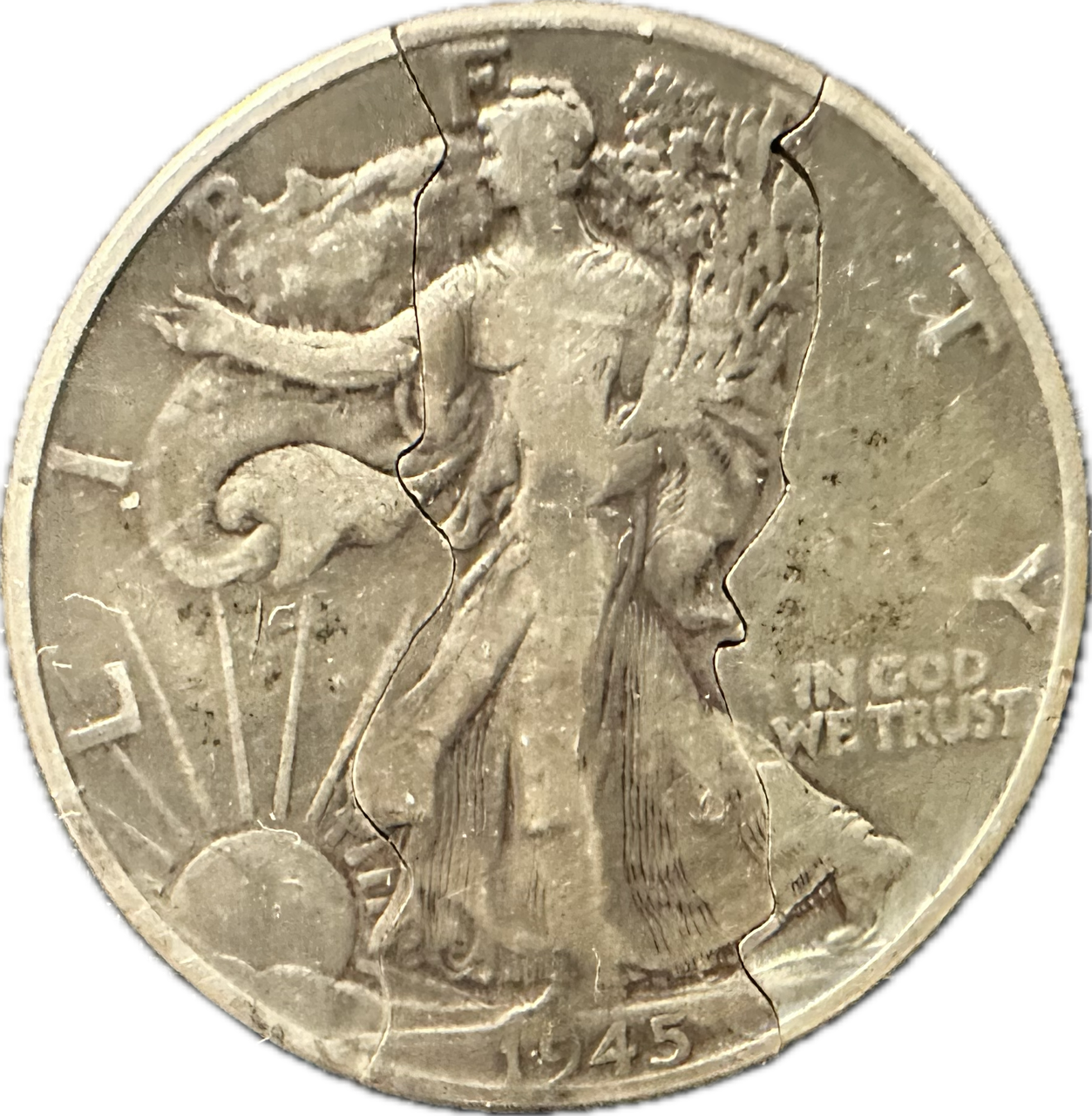 This folding coin is made from a REAL Walking Liberty Half Dollar coin!