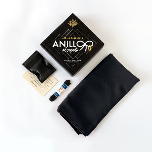 Effect: A borrowed ring disappears under a handkerchief and immediately appears tied to the magician's shoelace.