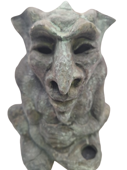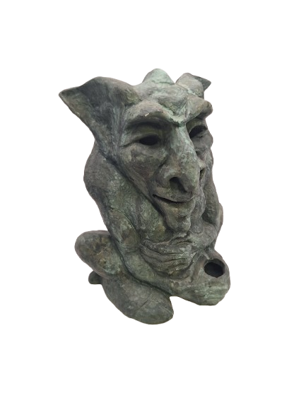 This is a gargoyle that is used to hold a candle or incense when performing his seance routines.