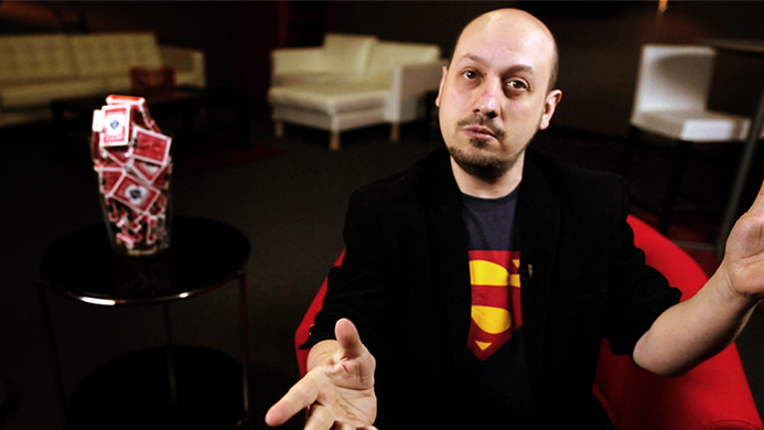 4 Cards are chosen and lost in the deck. Woody pulls out a card, not one of the 4 selections, and what happens next has to be seen to be believed. Woody rips the card into 4 pieces, and with a magical blow, the pieces change to the first spectators card. He then squeezes the pieces and they magically change to the second spectators card. But it doesn't sot there!!! A gentle shake and the pieces morph into the third spectators card. The pieces change one last time into the spectators last card, and the pieces fuse together, making the card whole again so the spectators can examine!