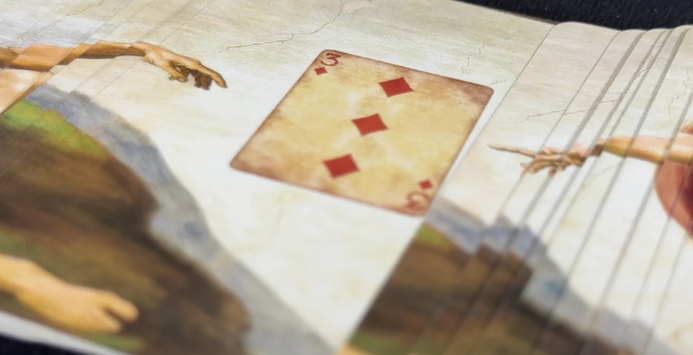 Your spectator freely chooses one of the famous paintings, then thinks of any playing card—and yes, it’s a completely free choice. They name the card aloud. You spread the deck slowly, and their chosen picture slowly appears!