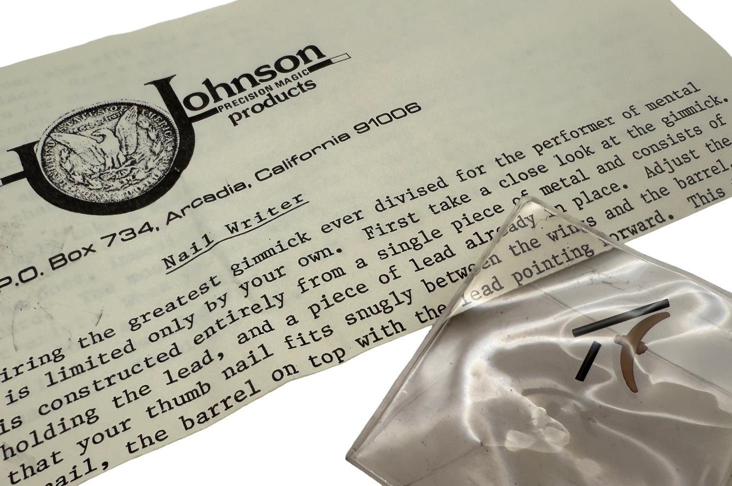 For year and years Johnson Coins held the distinct honor of offering the highest quality commercial coin effects offered to the world of magic. But as many of you remember they didn't just do coins, they did cups and balls and off shoots including their coveted nail writer.