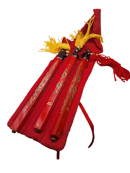 Classic Chinese Sticks in the Okito tradition. Brass tubing and brass weights for exceptionally smooth, silent action. Yellow sticks with long tassels for strong visibility. Each stick fitted with a rear hollow screw for the Benson-style dummy connection. Includes three sticks, allowing the full Benson routine with added climax.