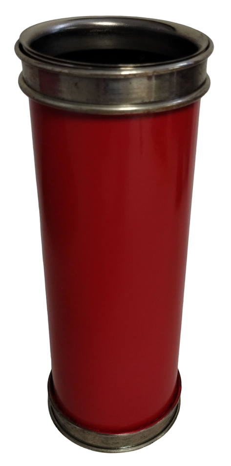 Effect: The magician shows a red painted metal tube to be completely empty and then seals the ends with tissue paper and chrome rings to create a drum head appearance. A flashlight can be shinned through the tube and tissue papers showing that the tube is still empty. Yet, at any time the performer wishes, he breaks the paper drum head at the end of the tube and makes a large production of silk handkerchiefs, ribbons, streamers, etc.