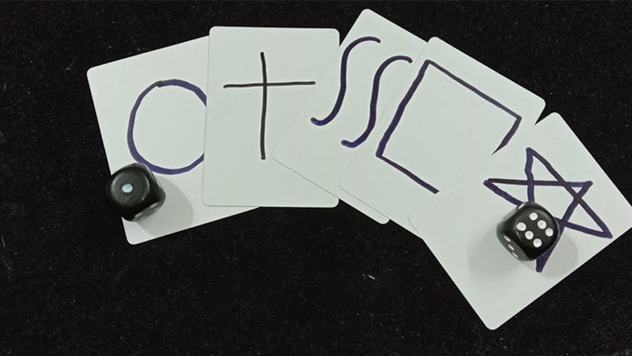 A miracle effect with ESP cards wherein a spectator selects a card & finds the mate of his card by throw of dice. The spectator's selection, too, is predicted well in advance & placed through out in full view & at the climax of the effect proves 100% correct.