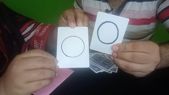 The spectator finds the match of her ESP card in a most mysterious manner.