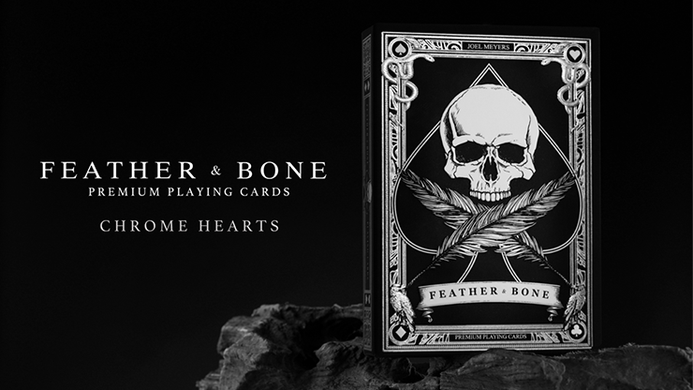 Step into a world where artist meets lifestyle with the Feather and Bone Chrome Skull Playing Cards, crafted in collaboration with master illusionist Joel Meyers. These stunning cards boast a striking chrome finish reflecting light and catching the eye, while featuring an intricately designed skull motif that embodies a bold spirit of adventure and intrigue.
