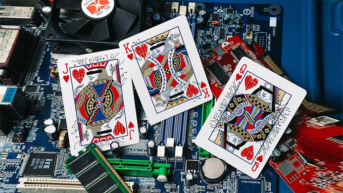 Hack the Planet Playing Cards are inspired by 90's hacker counterculture. The deck's name is actually a catchphrase in the movie "Hackers", filmed in that time period. This is the "Black Hat" edition.