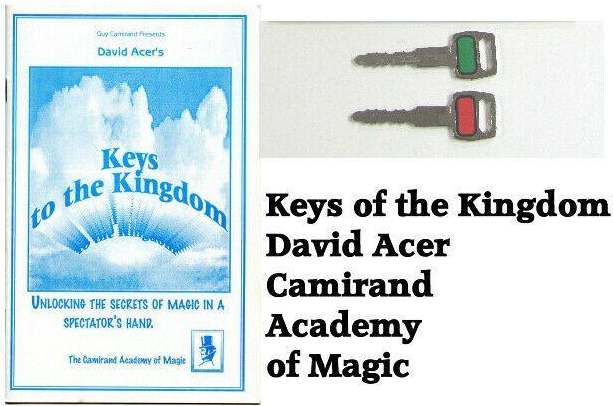 Keys to the Kingdom David Acer commercial stunner! In an attempt to keep from mixing up his keys, the magician points out that he has gotten them color coded -- one red and one green. Suddenly, the keys begin to change places in the most mind-boggling of manners! First, they transpose between the magicians' hands. Then they transpose in the spectators' hands! The red key is then sandwiched between two green keys, only to become a green key sandwiched between two reds! Finally, down to just one key, it vanishes completely, like the set you were sure you left on your dresser last night! Comes with precision-cut keys and booklet.