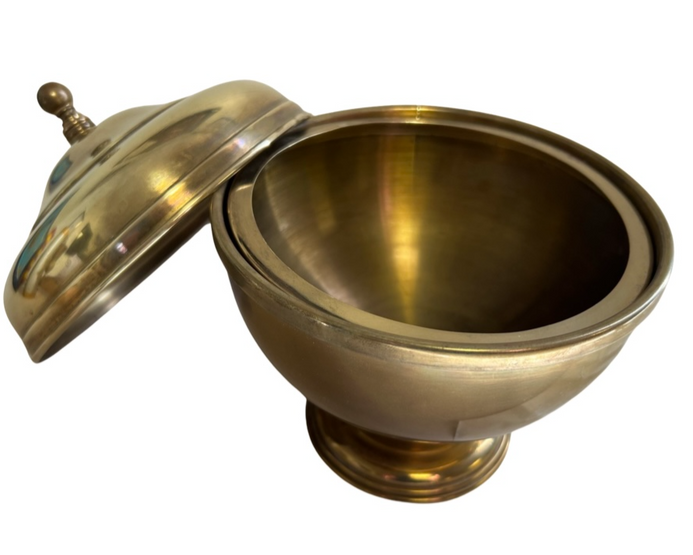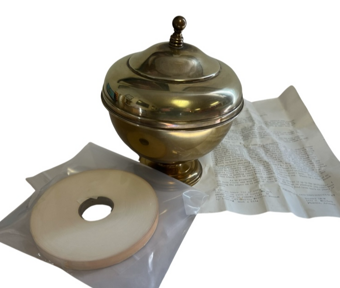 This is a Danny Dew Candy or Confetti bowl. It comes with original instructions and original paper coils. In full disclosure it is by no means pristine. There is a crack running down the inner bowl which we provided an image of. Reiteration – the crack is in the “inner” bowl not the exterior so it won’t be seen. Additionally the top knob on this unit is askew. However the unit is otherwise in good condition save for those two issues which we highlighted. The owner understands this and we have advised him to price it accordingly. As a display piece at the very least it has value along with its originality and prestige associated with the Danny Dew and Paul Fox name.