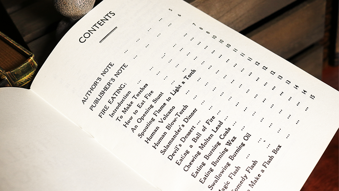 Thrilling Magic is filled with hard-to-find and very rare effects in the world of fire effects, side show feats, and the like. Some of the effects taught: Eating a Ball of Fire, Human Volcano, Chewing Molten Lead, Swallowing Burning Oil, Fire Eating (Chinese Method), Sword Swallowing, Driving a Spike into Head, Human Pincushion, Eating Glass, Temperature Rising, plus much, much more! Not for the squeamish!