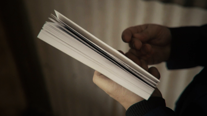 With the book in her hands, she remembers the page number she stopped at and thinks of a word on the page before closing the book.