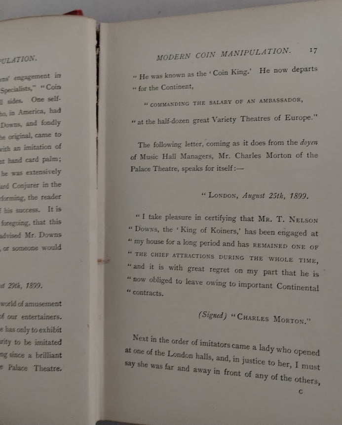 Modern Coin Manipulation - First Edition 1900 - T. Nelson Downs - Mitchell Estate