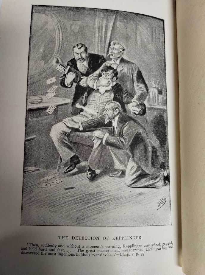 Sharps and Flats is probably the most important early book on cheating devices and methods. Sharps being the cheaters and flats being the cheated, the mark. Maskelyne details among others, marked cards, holdouts (Kepplinger holdout), reflectors and manipulation. He describes not just cheating at the card table but also cheating with dice, cheating at Sporting houses, and at Roulette. The book is very thorough with many wonderful illustrations.