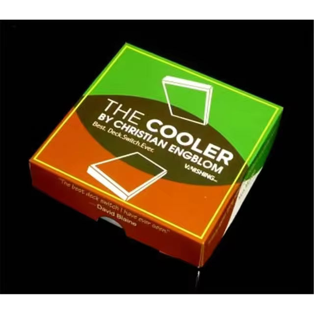The Cooler fixes this. It happens in plain sight, it is totally self-contained in the card box, and can be done standing, without a jacket or sleeves. You can customize this durable, precision-made plastic gimmick to any box of cards, and you can execute the switch in the hands or on the table. The possibilities are limited only by your imagination.