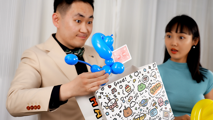 Harry Yang has long been interested in incorporating balloon animals into magical performances. After years of exploration, he created The Dog, a unique and interactive effect perfect for parties and kid shows.