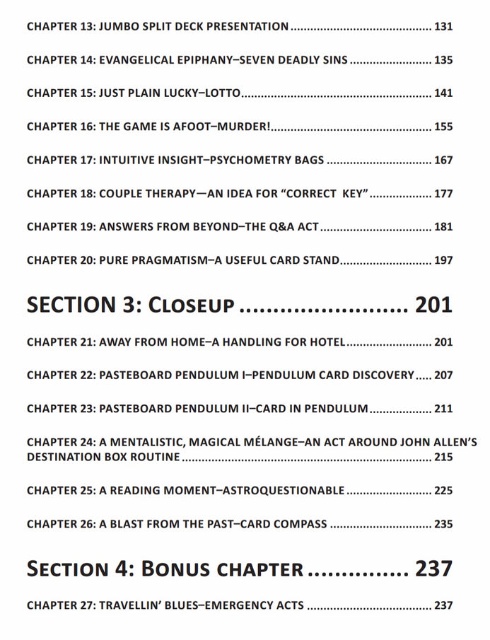 Also included are five professional routines of close-up miracles, including an entire act based on Jon Allen’s Destination Box.