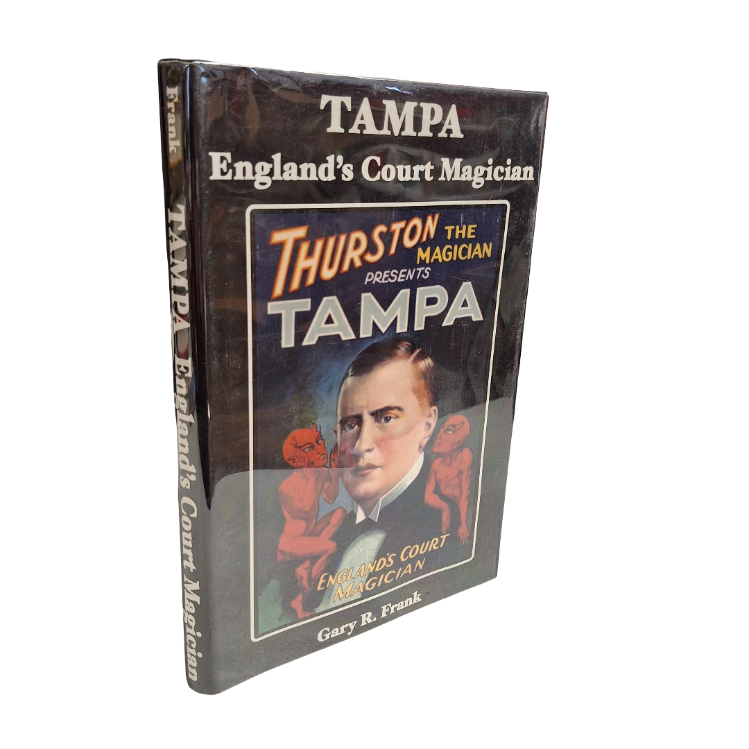 Photos, advertisements, and actual publicity are woven throughout the book to guide the reader through Ray Sugden's professional life. Added to this publication is actual correspondence from Thurston to Dante discussing the fate of Tampa and his magic career as Thurston's number three unit. You'll enjoy the eight page full color section which includes four Tampa posters, color advertisements and a special collection of Christmas cards from Thurston to Tampa, and more. The book is 152 pages, hardbound, gold stamped and includes a full color dust jacket.