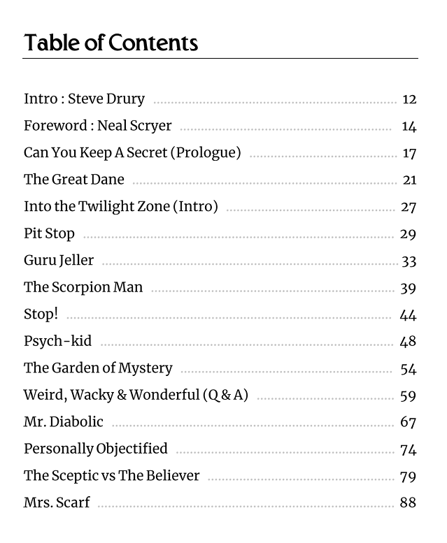 The book also features a foreword by Neal Scryer as well as a striking cover design and introduction by Steve Drury.  Steve lends so much more than his acumen for quality layout, publishing, design and artwork - he's a true blue Bizarist and Mentalism respected world-wide as well as a go to knowledge base in the UK.