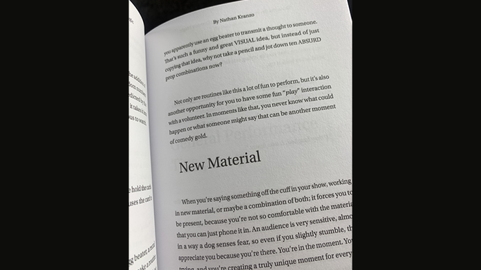 This new book contains 116 pages and 9 chapters filled with Kranzo's hardest won secrets, professional advice, and war stories. If you ever wanted to be funny while performing magic, this is the book for you.