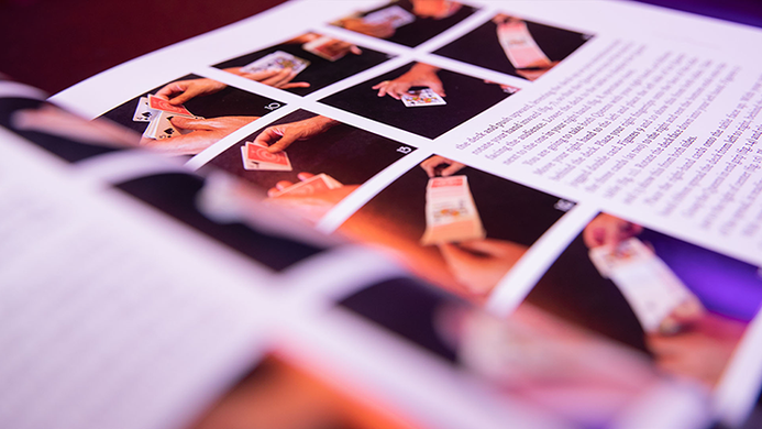 There are also 25 original sleights featured in Vallarino. From the proper handling for his Rumba Count to unique and practical palming techniques, a comprehensive look at his legendary tabled shuffle work, and more, this is a real treat for anyone who loves innovative sleight-of-hand moves.
