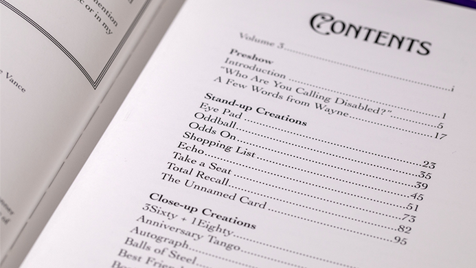 Learn the close-up showstoppers from his TV specials like "Coins to Glass" and his memorable "Homing Death Card" routine. You'll also get to see his one-of-a-kind approach to reimagining classic stage illusions like his take on the "Million Dollar Mystery" and his super popular "Tossed Deck Pro." No detail is spared as Wayne dives into the nuances and subtleties that make these effects so powerful, like how he wins over crowds with his go-to opening routine. For the first time ever, Wayne also shares the script to his infamous "Voices" routines from his Royal Variety Command Performance-which is still believed to be one of the greatest magic performances ever broadcasted. You'll even get a look at how Wayne modified material to be more hands-off and better suit his limited mobility later in life.