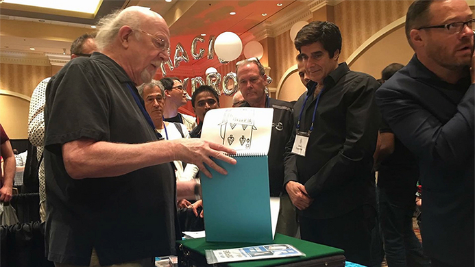 Effect: Spectator selects a card. Magician says he's drawn the card on a pad, and turns the pad around - it's an entire deck of cards! But not to worry - suddenly a drawing of the spectator's card magically rises from the drawing! You actually watch it rise - looks amazing! AND, the magician can tear out the page and hand it to the spectator as a souvenir!