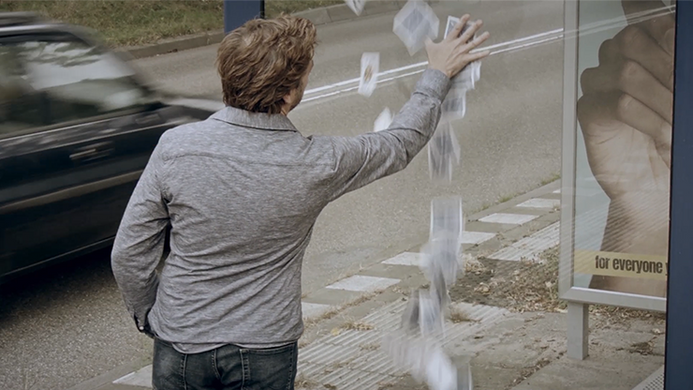 With a closer look however, the card is NOT on the outside but on the other side of the glass -the selected card has actually penetrated the glass. Solid through solid!