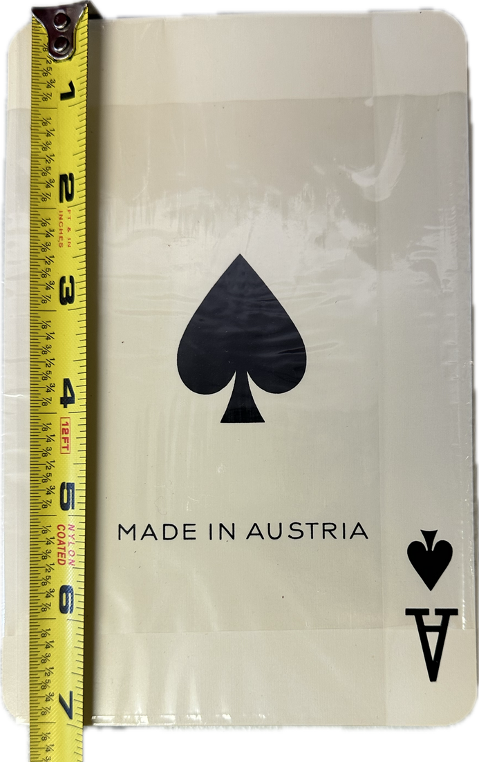 These vintage oversized playing cards, manufactured by Piatnik of Vienna, were specifically designed for stage magic performances. Their large format ensured visibility for audiences, making them ideal for illusions where standard-sized cards would be too small to discern from a distance.