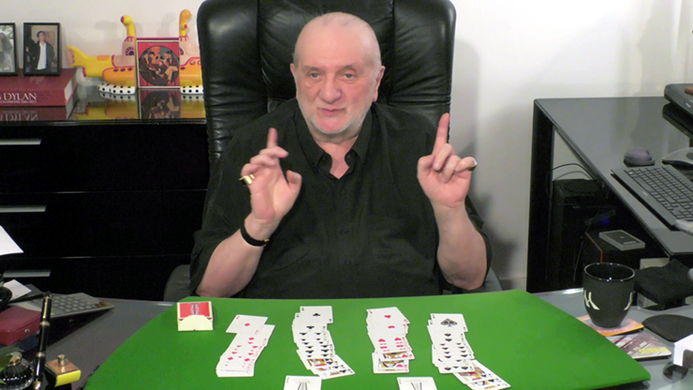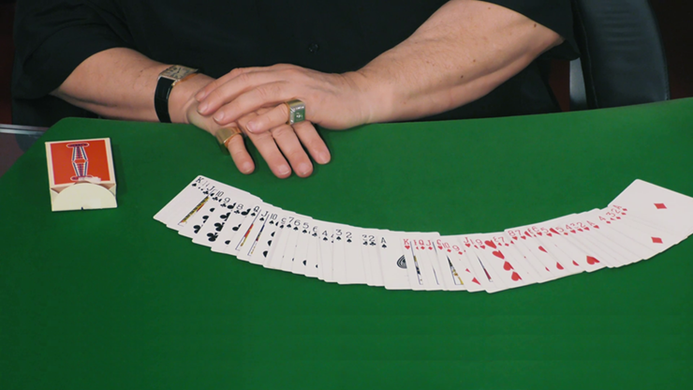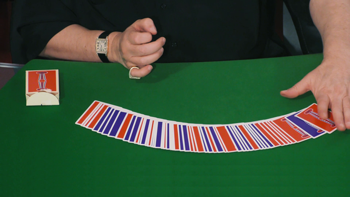 Then we would cut the deck into four packets, and produce the four Aces!And finally, the cards from the four packets would be ribbon-spread, and we'd have the Spades in order from Ace to King, as well as the Hearts, Clubs and Diamonds!