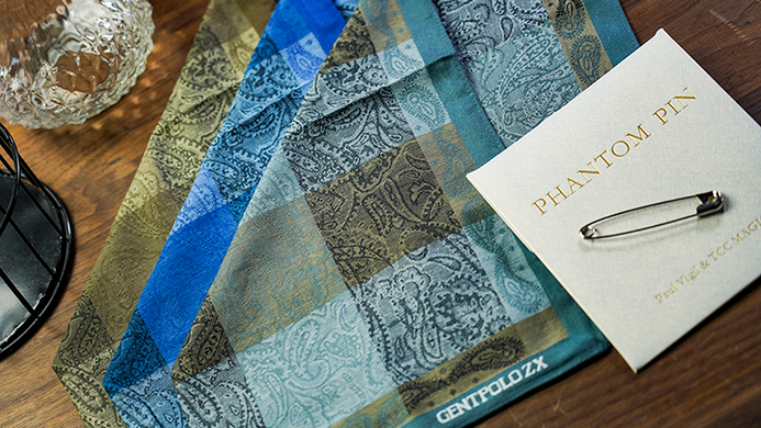 The magician then lets the spectator buckle the pin in one of the corners of the handkerchief and points to any position on the edge.