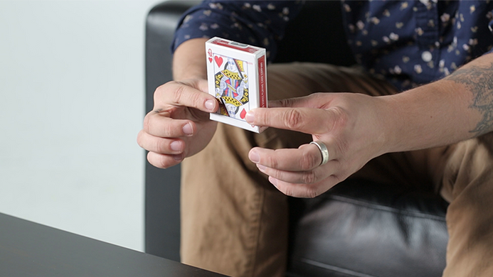 Imagine showing a spectator a sealed deck of cards, placing it between their hands and having them think of a playing card. Now imagine that the card they just thought of is now impossibly trapped and sealed inside the cellophane which has never left their hands! The best part is, everything is fully examinable and they can decide to tear it open to find out how it was done, or keep it sealed as an impossible souvenir!