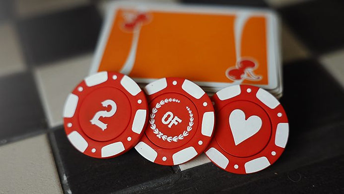 Slowly, you turn each chip over to reveal the exact name of their thought of card printed across the back of the three poker chips!