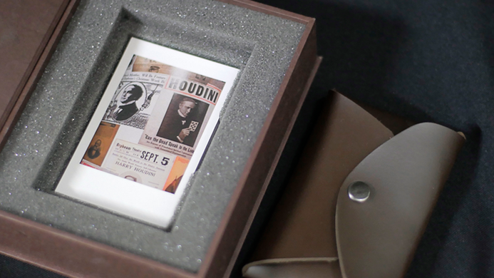Spectators choose a card and on the blank poster visually appear Houdini and he move showing the spectator's chosen card.
