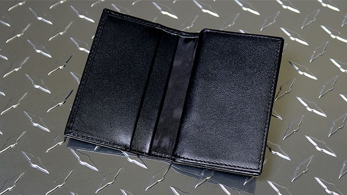 Money Warp - A bank note is borrowed and signed by the spectator. A business card is introduced and examined. The note is placed into the business card and is magically wiped clean. The magician opens the wallet to get another bank note, only to find it's the spectator's signed bank note!
