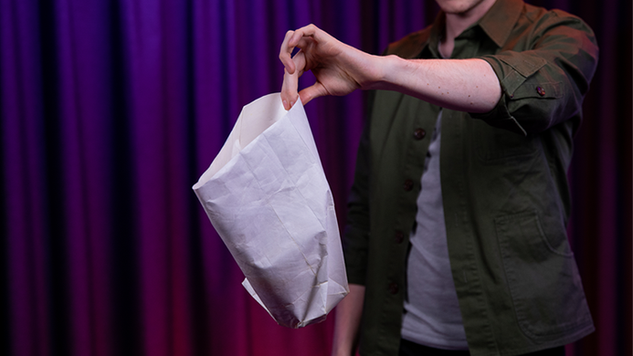 A folded bag is removed from your pocket and unfolded in front of the audience. You clearly show them its empty and can even let them put their hands inside of it. It's undoubtedly an empty bag. So far, this is the same as most marketed effects.