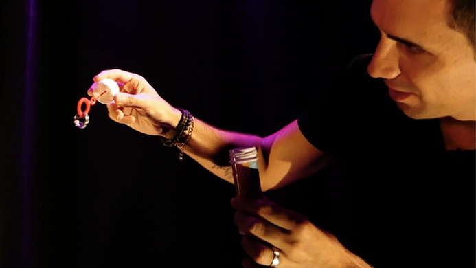 Imagine borrowing a spectator's ring to make it travel inside of a bubble (sounds impossible already!), until you gently "splash" the bubble, Making the ring appears again, but... LINKED to the bubble wand.