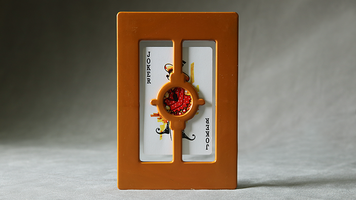 Effect: the magician shows a clear plastic piece framed in on all sides by opaque plastic. A playing card is placed on the clear plastic piece. Surprisingly, when the card is removed, the card has a hole in it and the clear plastic is unharmed.