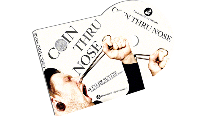 Are you ready for something truly shocking. A coin is marked for identification, paced on the tongue, swallowed, and moments later, to your audiences shock and delight, the coin is pulled right out of your nose! First Tyler Sutter of the 20 Penny Circus shares with you his perfected stand up handling, staging, and routine that he has used hundreds of times on the largest stages at some of the largest entertainment venues in the world. Then Lonnie Lyerla will show you additional handlings that are perfect for close up situations, including a killer vanish. These effects are so good that your audience will not know that they are only an illusion. The most believable yet incredible piece of geek magic you can do, this is Coin Thru Nose!