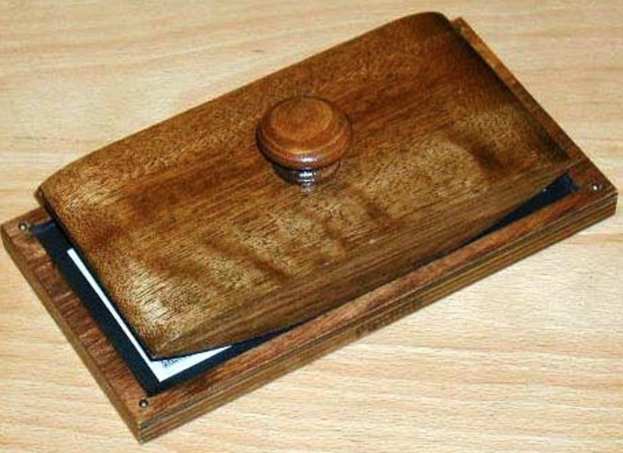 This came from a re-release the famous collectible created originally by Ben Stone. It has been years since this original was produced and Stevens Magic is proud to bring back a high quality magical prop as the Delben Blotter! The magic blotter can be used for a number of impressive routines. The most well know is the Money Machine. Place a blank piece of paper on the base and rock the blotter over it. The paper instantly changes into real money! Or place a dollar bill on the base and change it into a $100 bill! This will get their attention. Or have a card selected and torn into pieces, retaining one piece, arrange the pieces on the base, rock the blotter and the card is restored and the one piece matches the restored card which is missing a piece! The Delben Blotter looks like an old-fashioned desk blotter and is beautifully constructed out of black walnut with a hand-polished finish. The method is undetectable. Stamped with the famous Delben name and made to perfection for us by George Robinson famous for the fine Collector’s Workshop-Viking line of magic products…No one does it better than George! Don’t be tempted by the “rip-offs” as they cannot compare with the original! A great desk top piece of magic! An unusual trade-show piece! A collectible for your collection! A proud piece to own! Authentic Delben is no longer in production - this is your chance to get one but very limited quantities.