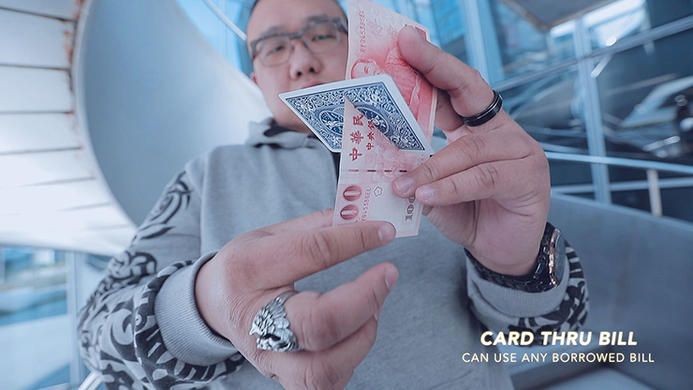 You receive everything you need to perform this effect. At the end, a simple switch allows both cards to be examined. If you wish, you can perform this penetration effect with a dollar bill. This looks hyper-visual and would make an ideal clip for social media or a television appearance, and yet it has the practical angles and handling benefits of being a worker piece in your strolling repertoire.