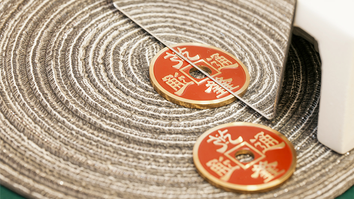 Firstly, you place an ancient Chinese coin close to the mirror, and then take out the mirrored coin reflected in the mirror! Then you place the mirror in the middle of the original ordinary coin. This coin has become a half normal and half mirrored coin. After the audience checks, you place this coin close to the mirror, then it becomes an 8-shaped coin, and then Ni melts it into a heart shape.