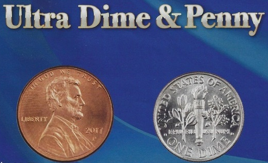 Introducing the Ultra Dime & Penny, a UNIQUE addition to any magician’s repertoire. The performer presents two coins—a dime and a penny (BOTH SIDES ARE SHOWN) —placing them directly into a spectator’s hand. The spectator is then instructed to cover the coins with their other hand.