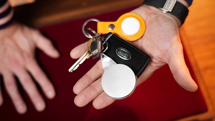 During your performance, you casually place your keys on the table, fully visible to your spectators. You borrow a ring or coin-then, in an instant, it vanishes, perhaps in a flash of fire. Drawing attention back to your keys, which have remained untouched, you point to The Vault.