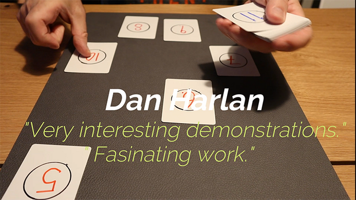 FAST MATH - (Face down) This is the same effect as Fast Math (Face up), but here with an idea by Dan Harlan, to start with the cards face down. Here you turn the cards over one by one to show each row is adding up to the number the spectator has named. Handling, setup and system by Lars La Ville.