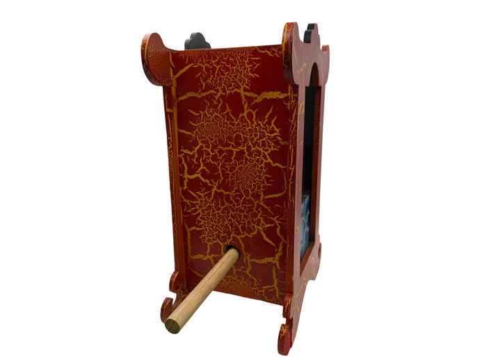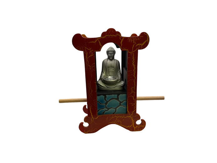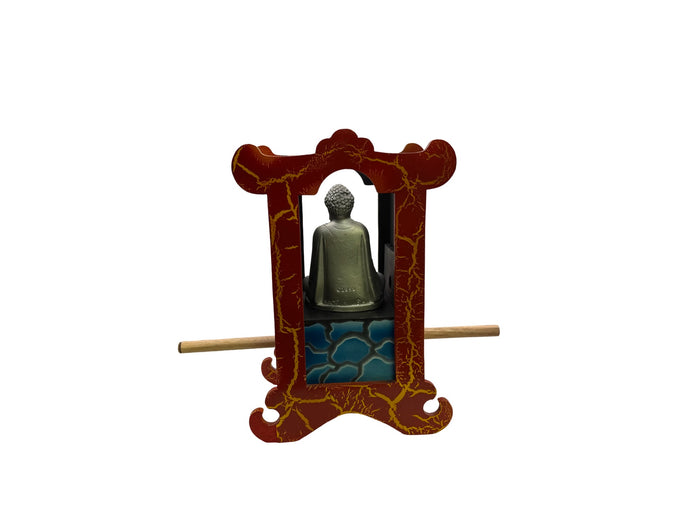 Effect: The Buddha who maintains order and harmony sits on his sacred block meditating during the day. At night he retires to his Majestic Pagoda. Unknown to him are a pack of evil drifters that scheme to take over the village and plunder it's assets and good will. They evil drifters blend into the shadows as night falls waiting for the Buddha to retire into his Pagoda for the night. When the Buddha does they penetrate the block with a solid rod which locks the Buddha inside his Pagoda. The plan is perfect - but by design only. As the evil doers head off to create chaos they look back astounded to see the Buddha has ascended from his pagoda despite their assumed fool proof design to lock him inside.