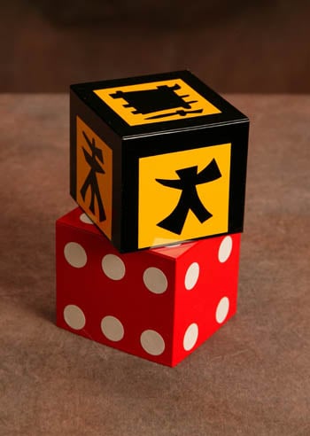 A large red die is shown and spun between the two hands. The die is taken apart and from it you remove what you state is “A Carrying Case” for the die. The two sections of the red die are placed on the table in full view so that the audience has a clear view both inside and out. The case is now opened up and is also shown inside and out. The empty case is placed on the table alongside the red die.