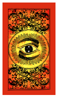 “Would you mind, please, turn over the Pale Horseman…” On the back, now, is a red, like blood, with the All-Seeing Eye. “Judgement.” The magician continues. “Symbolism, that is all! Right? I suppose you are wondering about the other four cards?