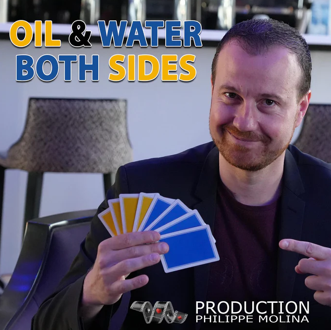 The concept of "Oil and Water" is one of the most baffling effects in the art of magic. Rene Levand made his reputation just with this one effect alone which was titled, "It can't be done any slower." It appears that Phillipe Molina's is ambitiously achieving the same attempt with his version of this AMAZING effect: